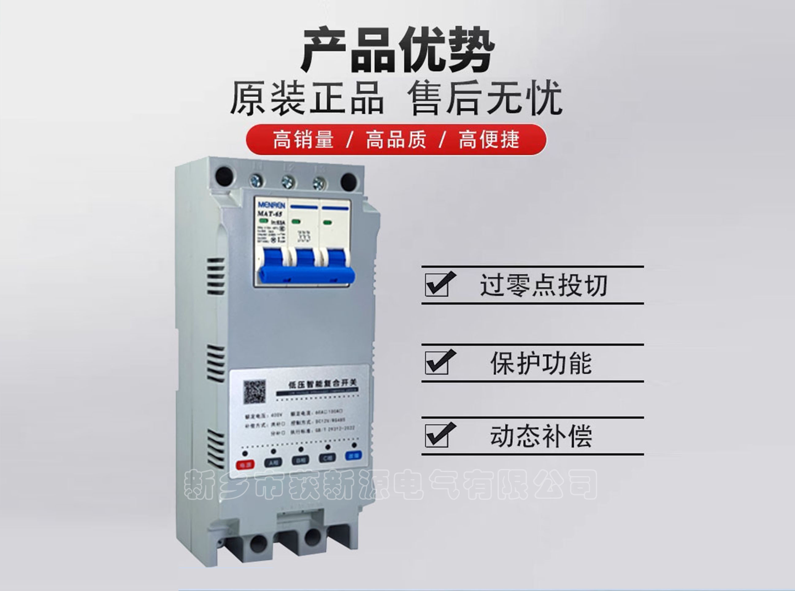 智能動(dòng)態(tài)復(fù)合開關(guān)是一種智能化的投切開關(guān),結(jié)構(gòu)安全可靠。它利用先進(jìn)的軟件同步過零技術(shù),持續(xù)跟蹤磁保持繼電器的動(dòng)作時(shí)間,可靠地實(shí)現(xiàn)零電壓時(shí)合閘和零電流時(shí)分閘時(shí)無弧通斷。保持接通狀態(tài)用觸頭承擔(dān),運(yùn)行中無降壓,微耗能。具有抗干擾、防雷擊和電源缺相、空載跳閘的保護(hù)功能,特別適用于無功補(bǔ)償時(shí)切換電容器,也可以用于電動(dòng)機(jī)起動(dòng)控制和電阻性負(fù)載的切換。不需加裝散熱器。